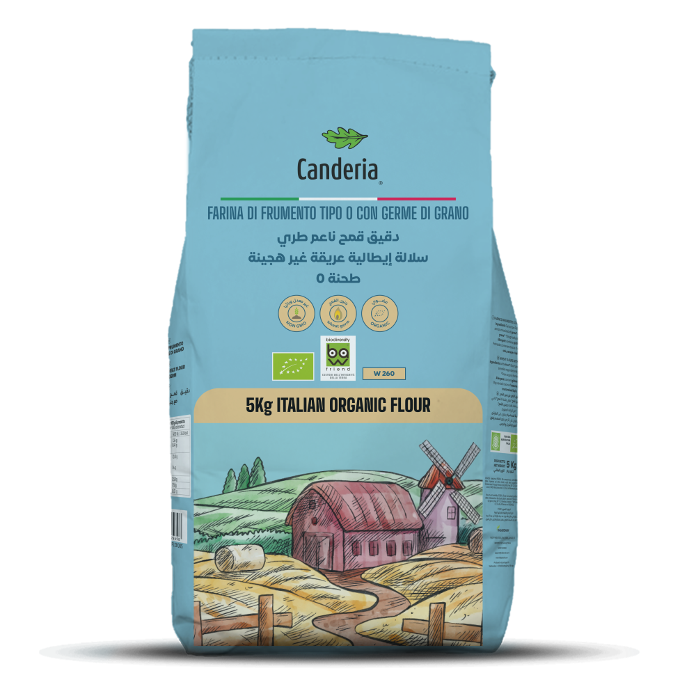 دقيق عضوي من سلالة إيطالية عريقة جدا يحتوي على جنين القمح، حيث يعتبر جنين القمح مركزٍ طبيعيّ غنيّ من العناصر الغذائية، والخصائص الصحية والنكهات المميّزة، يحتوي على فيتامينات B وE، دهون صحية (أوميغا)، بروتينات، ألياف، ومعادن مهمة كالمغنيسيوم والحديد والزنك، مما يجعله مكونًا أساسيًا في الغذاء المتوازن.